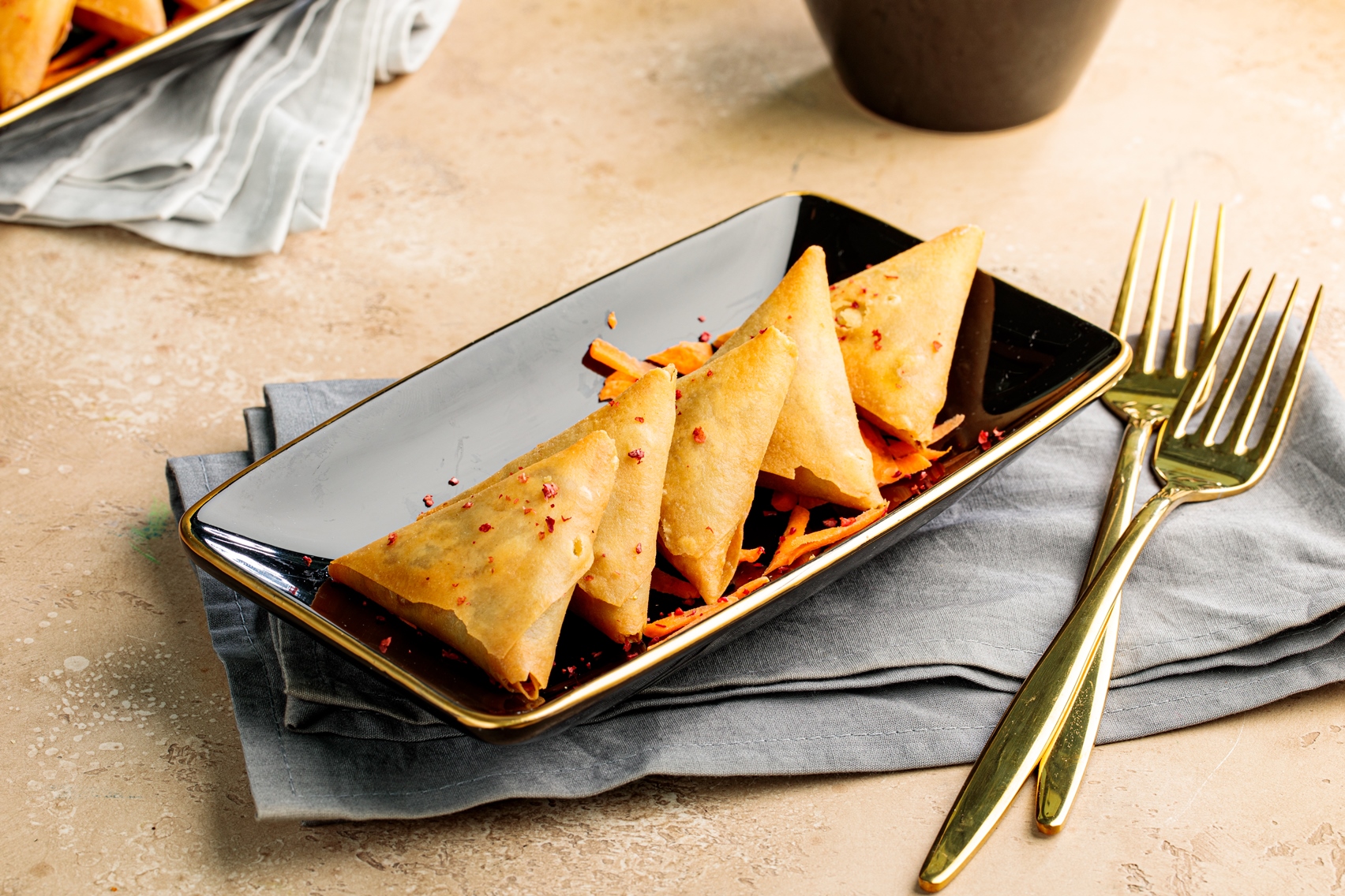 سمبوسة جبن دار نوره 5 قطع تتكون من عجينة رقيقه مقرمشه محشوه بجبن كريمة كيري.