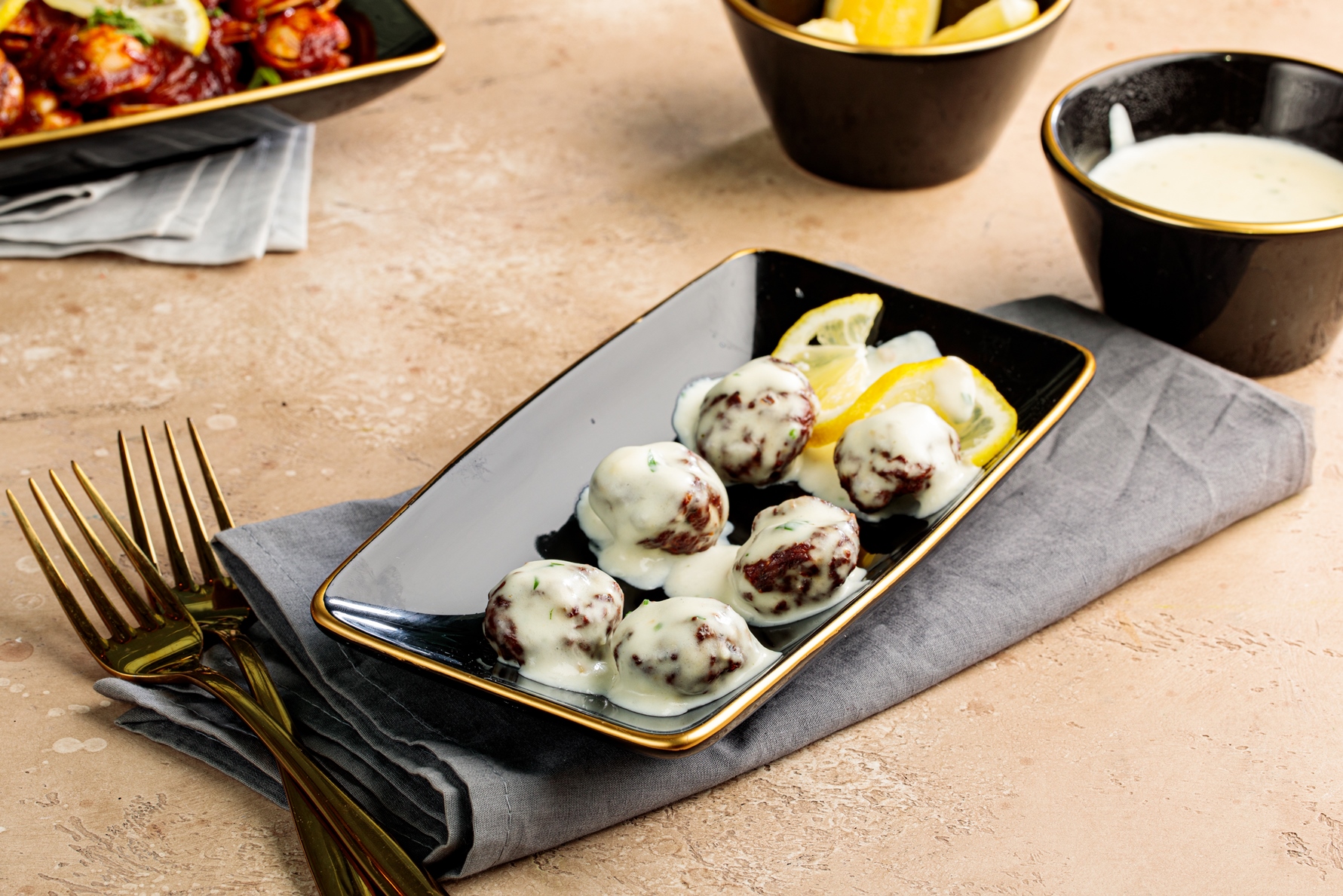 كفتة لحم طازجة متبلة بتتبيلة منزلية مغطاة بصوص دار نوره الحصري