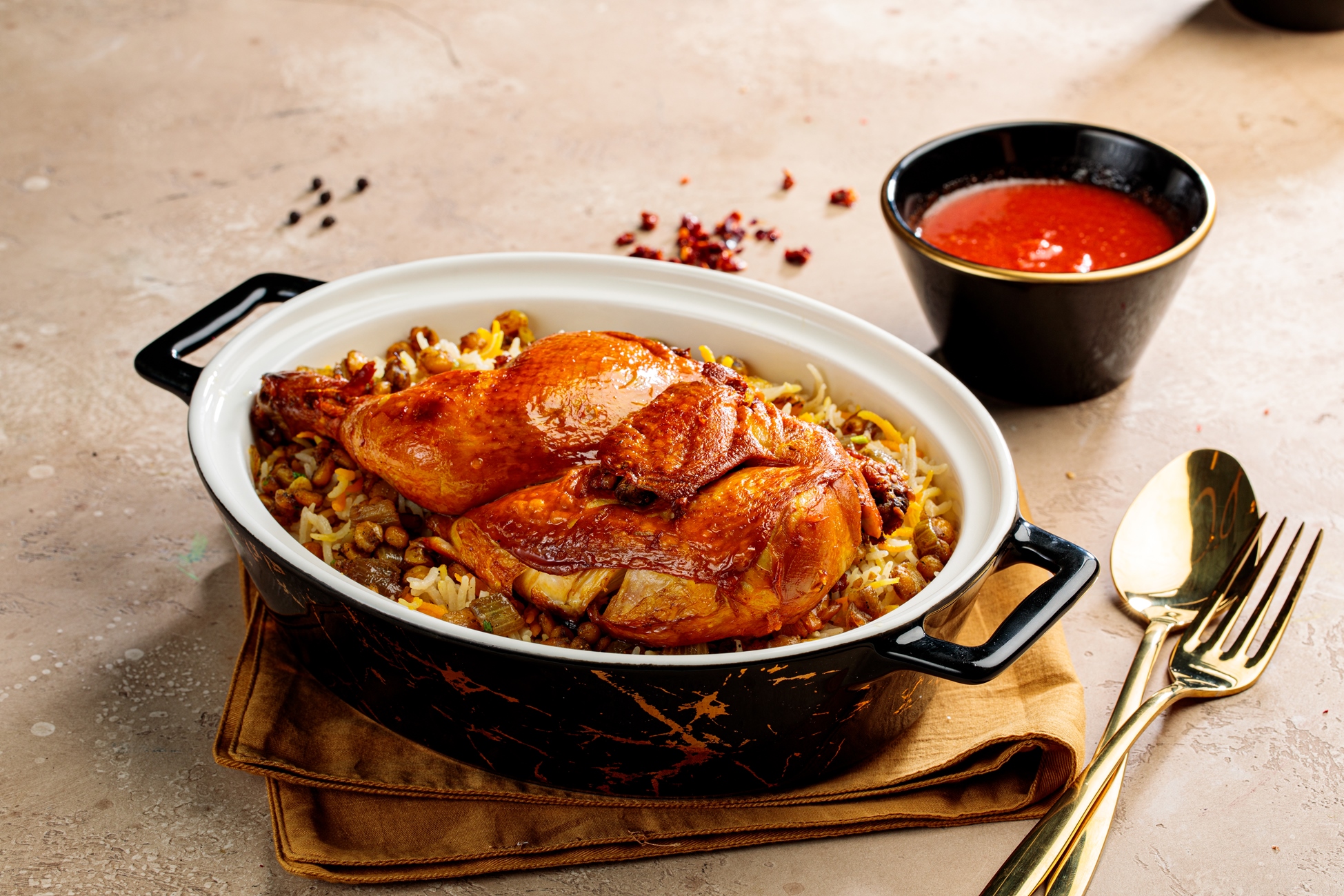مالارز المطبوخ بمرق الدجاج محضر بطريقه خاصه لمطعم دار نوره, يقدم مع الحشوه الكويتيه المخصصه والدجاج المتبل بتوابل دار نوره المميزه.