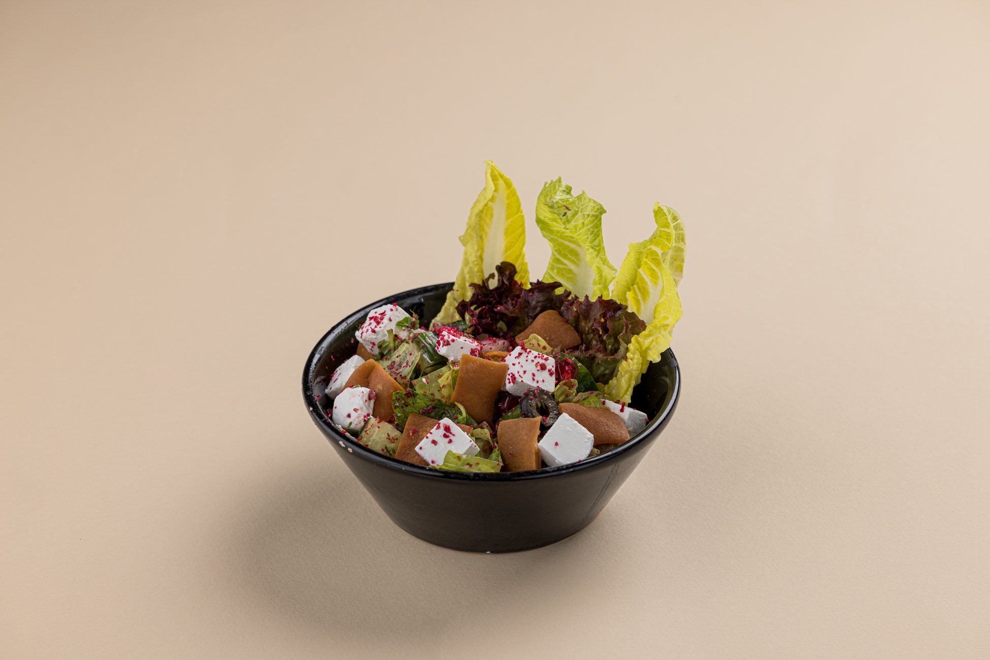 زيتون أخضر ، خيار ، طماطم ، بصل أحمر وجبنة فيتا مع صلصة أفنانتيو الخاصة
