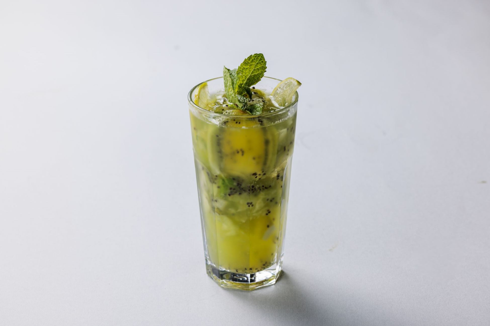 مزيج من الباشون فروت الطازج وعصير الليمون والنعناع والصودا