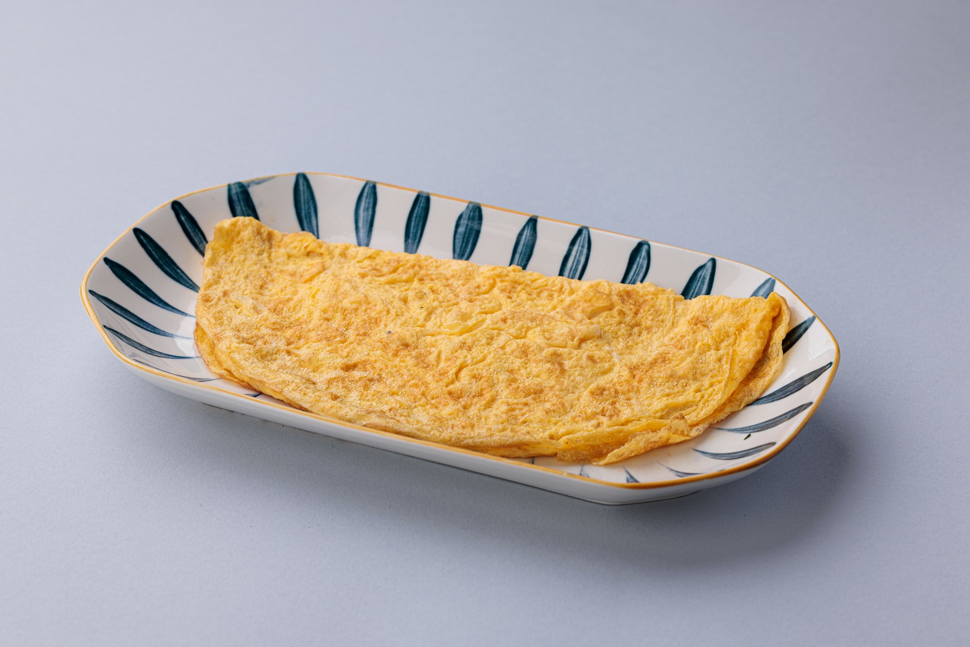 ثلاث قطع بيض مقلية بالفلفل الأسود والزبدة ، تقدم مع خبز دار نورة المميز.