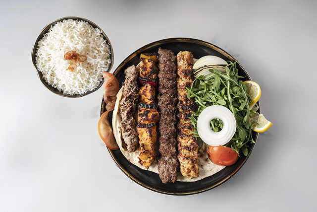 كباب دجاج بالجبن وجيولو كباب وشيش طاووق و تيكا روب مع الارز الابيض